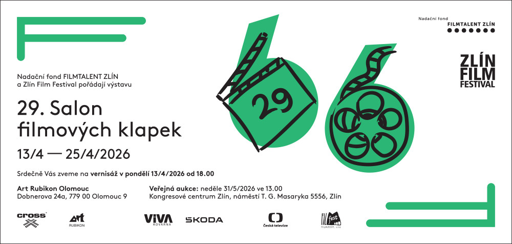 Film, výtvarné umění a konkrétní podpora mladých tvůrců se už 29 let potkávají v projektu Salon filmových klapek. Letošní ročník nabídne kolekci 120 originálních výtvarných děl, která se v olomoucké ART GALERII v kulturně-edukačním centru ART RUBIKON představí od 13. dubna. Projekt je pevnou součástí doprovodného programu Zlín Film Festivalu a dlouhodobě se zaměřuje na finanční podporu začínajících filmařů.